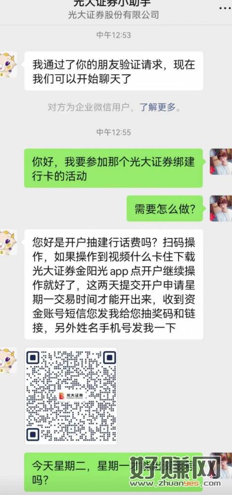 人人50话费,光大证券,开过的注销换手机号,再开,转户就行,微信添加企业微信,和他说50话费,按他说的流程走,当天出资金号,当天抽话费。