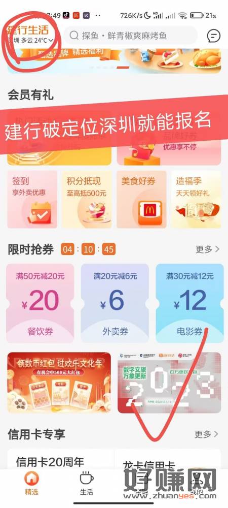 建行生活定位深圳报名 数字币抽奖 大毛
