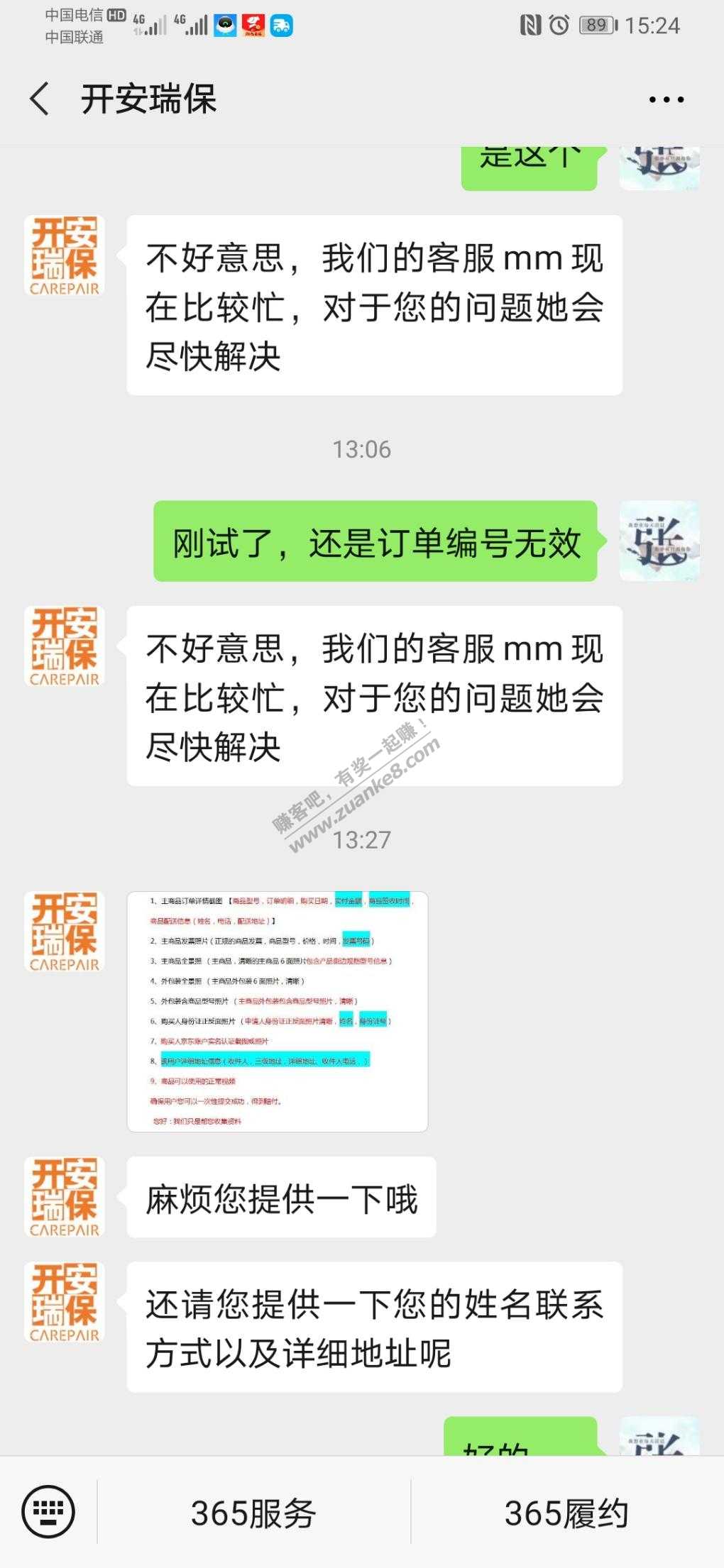 网页订单编号无效的,添加vx开安瑞保,直接发订单号联系客服,客服会让提供下图东西。提交后等审核结果
