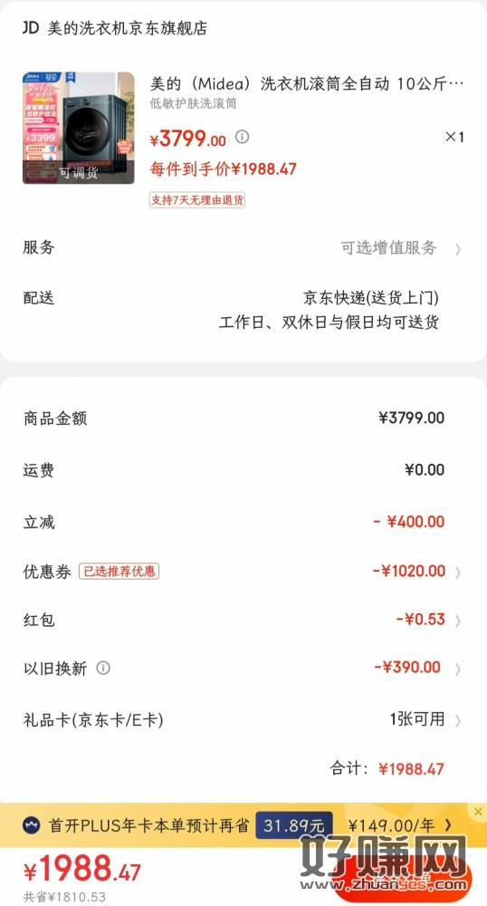 京东购物小程序 每日签到抽奖3次可赢至高888元红包