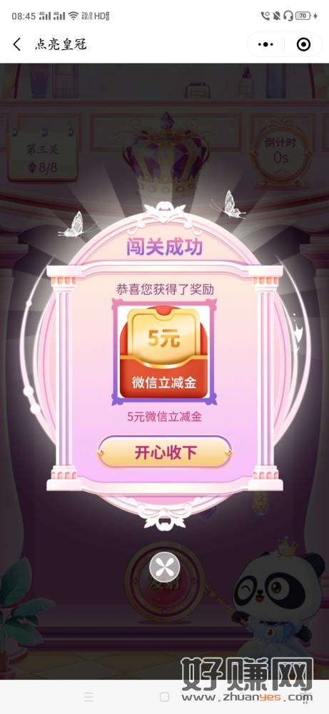 工行首页横幅进去,第四个活动,跳转小程序去闯关5元立减金