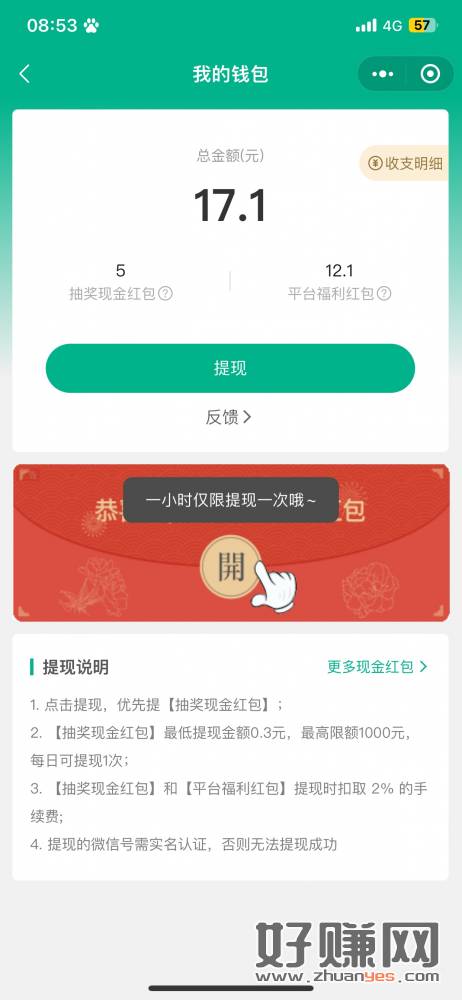 工行立减金可用这个小程序去t ,但注意一小时只能提现一次,可