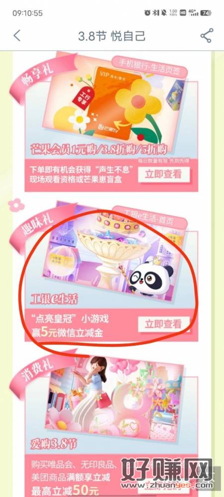 工行这个,跳转小程序,玩游戏,有立减金