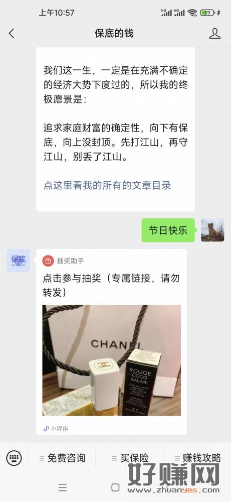 关注微信公众号[ 保底的钱 ]回复“节日快乐” 参与抽奖 奖品