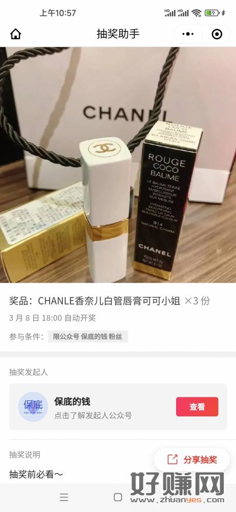 关注微信公众号【保底的钱】回复“节日快乐” 参与抽奖 奖品:唇膏 开奖时间:3月9日