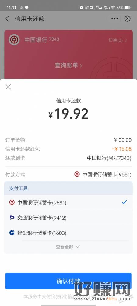 刚开始添加了中国银行xing/用卡仅还款功能,没有开通快捷支付功能!我要还款的时候提示开通支付功能立减15.08
