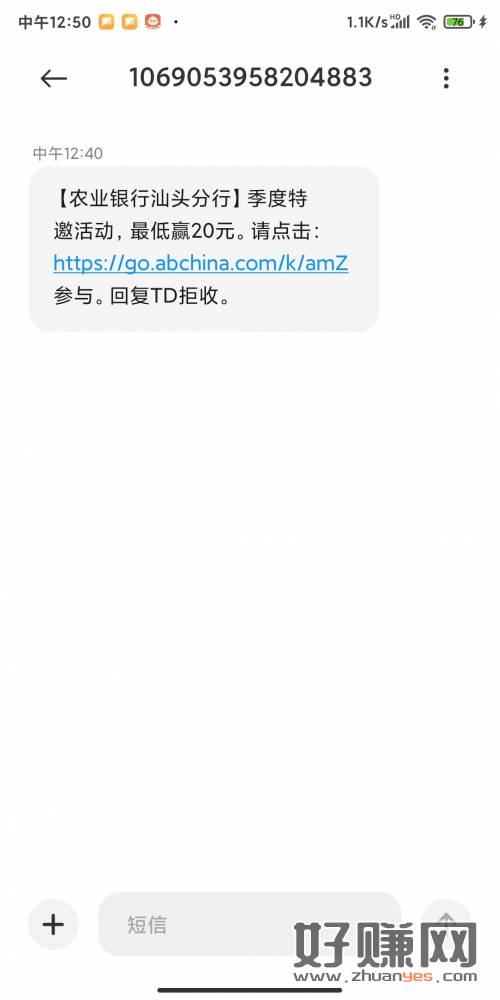 收到短信,我没飞。第一时间去的。搞了4个5元。奖品还有百分之
