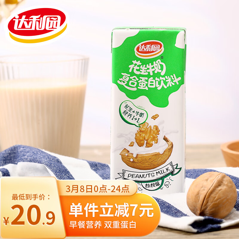 先入会领69-15劵,达利园 花生牛奶核桃味250ml*12盒送礼整箱