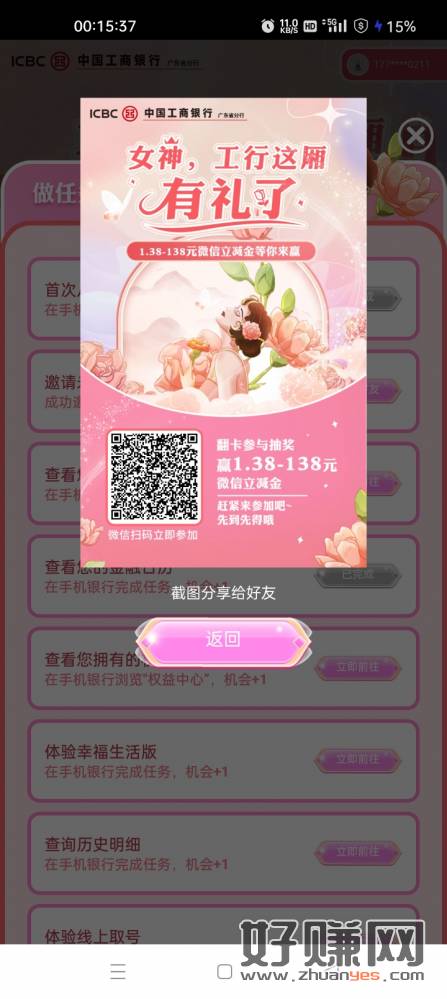 广东工行,抽立减金,可拉5人头(已满)。做完所有任务,最多可