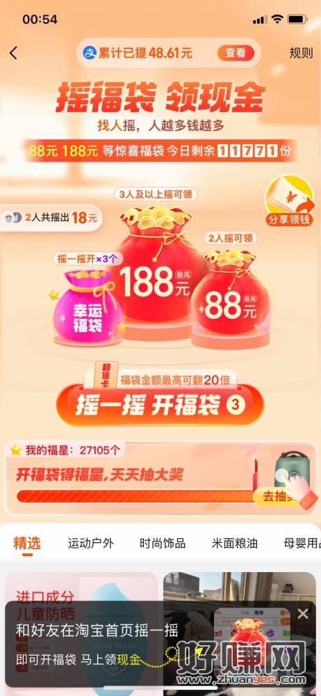 CZ0001 和我一起摇福袋,领最高88元现金哦