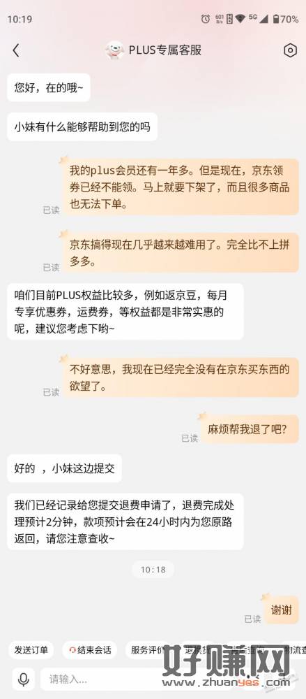 京东plus会员还剩下1年,刚刚联系客服已经退了
