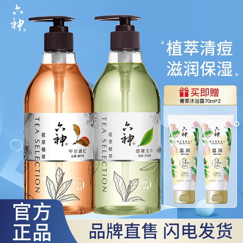 六神 沐浴露套装475ml*2[ 肖战同款 ],到手32.9亓,折16.4/瓶,注意赠品