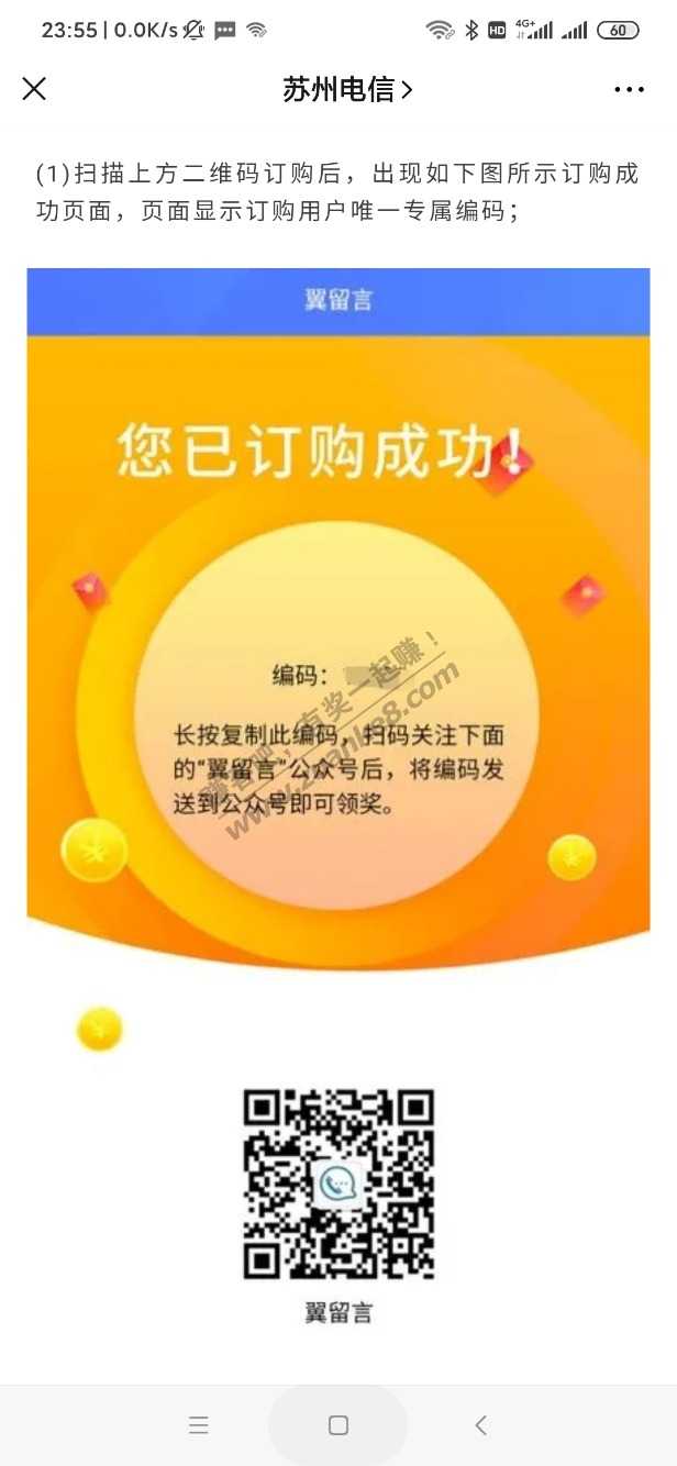 ,订购成功记得复制那个订购编码,然后关注翼留言公众号回复编码,会发送抽奖链接,保底3元,最高200,相信我马上会有吧友中200的,别忘了会来加果