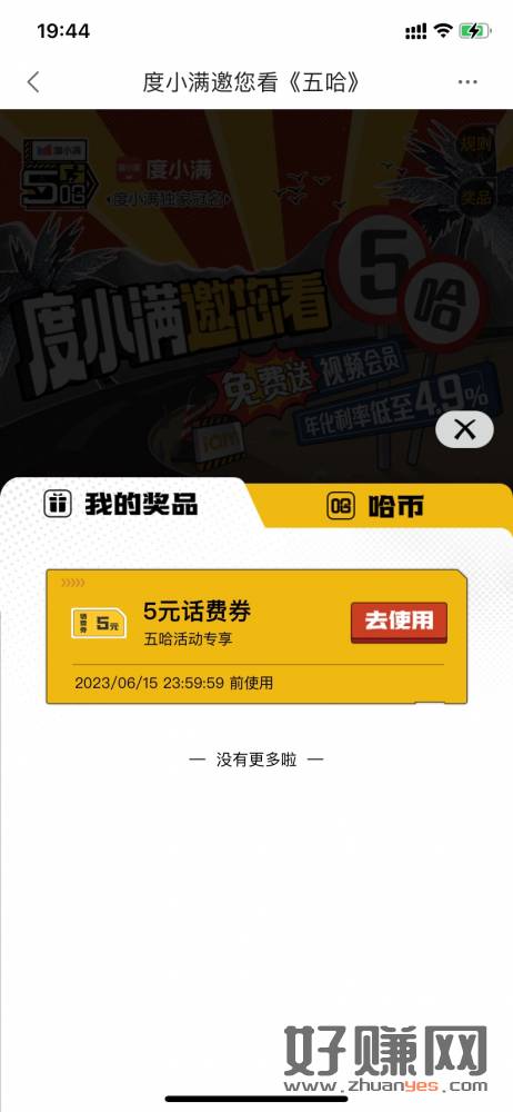 下载度小满金融,首页右下角看五哈进入,左上有个抽188进去抽,话费券满10就能用