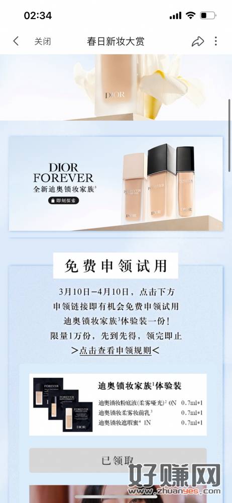 哔哩哔哩免费申领Dior领锁妆粉底小样三件t
