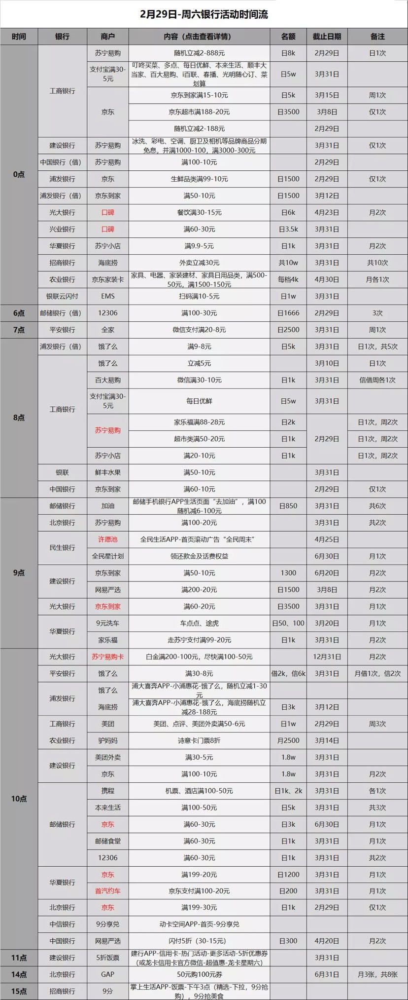 2.29各银行薅羊毛活动,好用加果