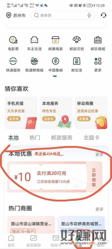 邮储app-生活-本地优惠,领到券可以看附近适用门店,我前几天领的,昨晚想起来找附近的YJ店用了,满20WX扫他们的邮政SK码会显示券的。没有江苏邮储卡可以去MT开个联名卡,周六日还能领HB买菜。我就是MT联名卡二类卡。