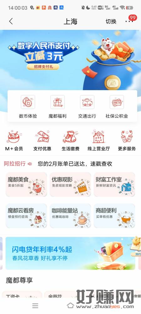上海招行3元无门槛数币消费券