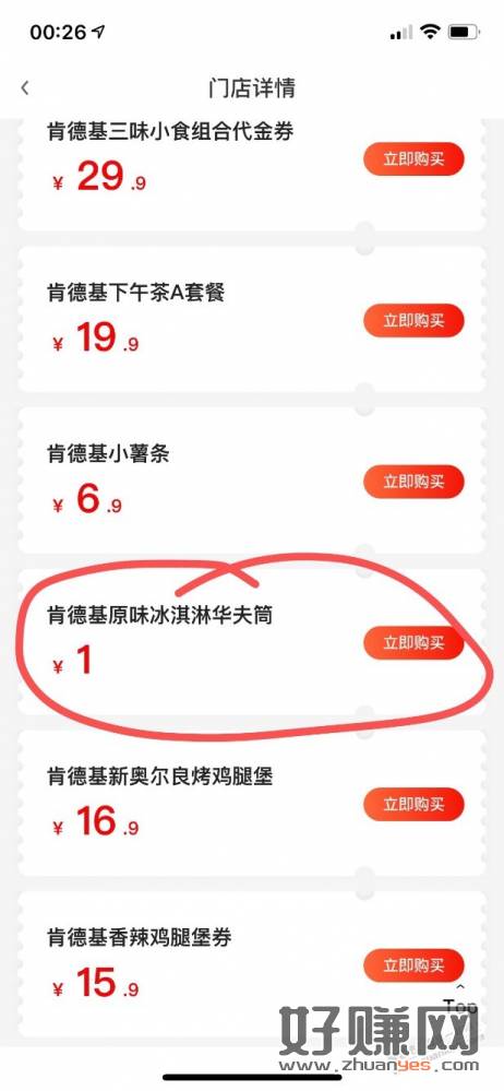 动卡空间,搜肯德基,买肯德基原味冰淇淋华夫筒1元,可卖平台可自用