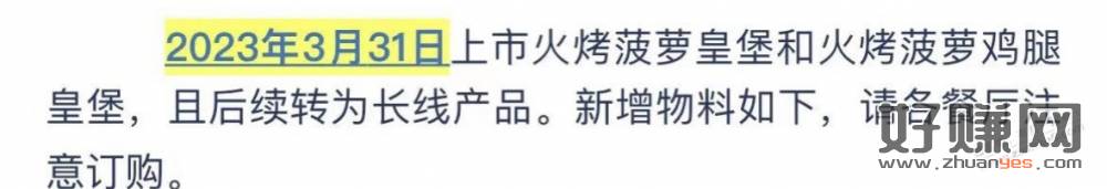马上会从LOT(季节限定)转为长线产品,别吃小皇堡了,真心不好吃,我从来都不吃那个,宁吃炫辣和双层香脆我也不吃小皇。对自己好点吧,火烤菠萝点起来。