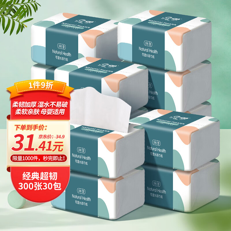 采琪采 亲肤加厚抽纸300张*30包/箱,P价下单,到手29.6亓+u