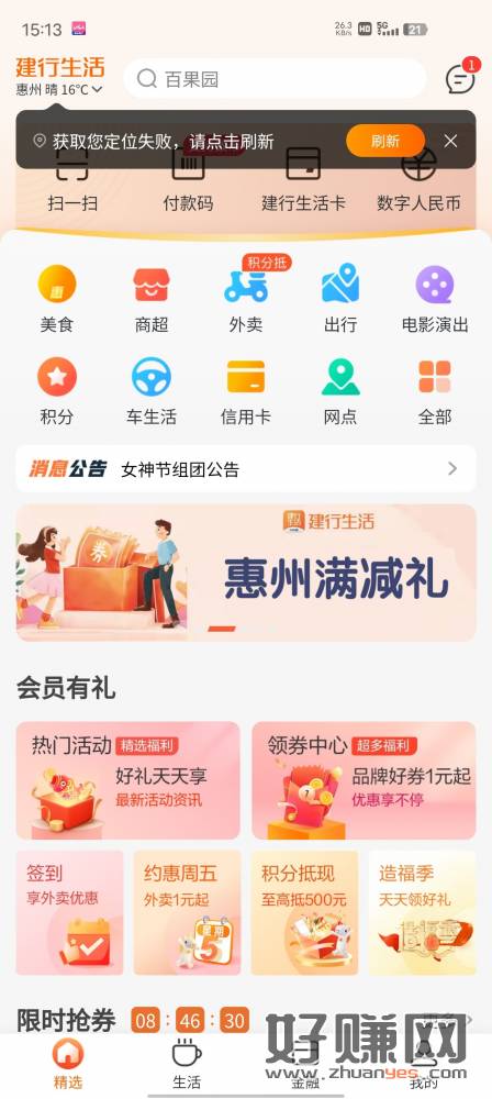 建行生活定惠州,惠州满减礼,领20-19劵。自己找车