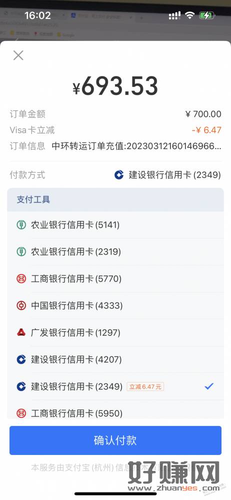 支付宝,建行VISA双标卡,满700随机减,主扫也出,支付前会显示优惠