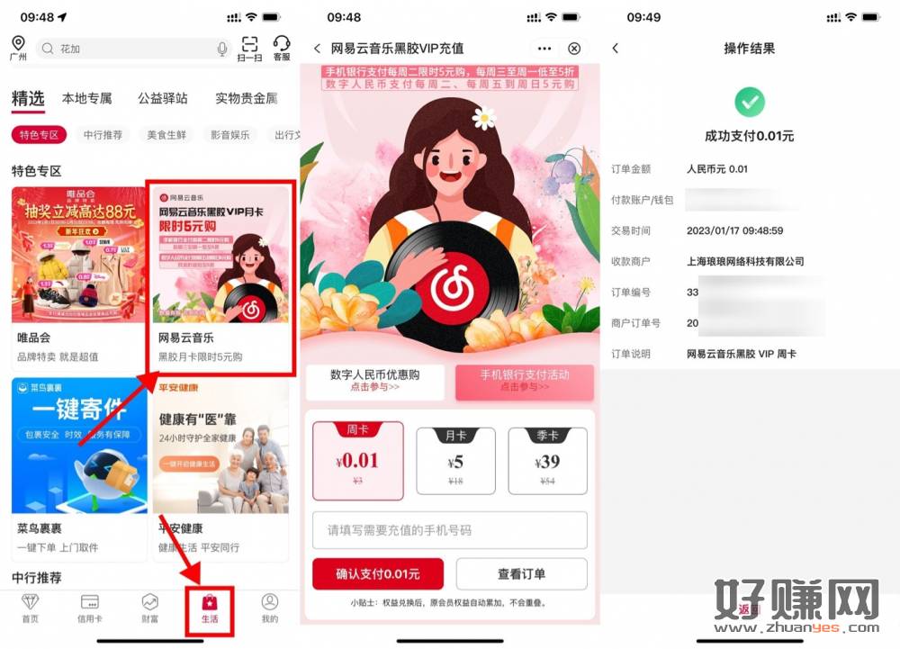 【中行0.01元开网易云音乐周卡】新一期!中国银行APP->生活->下拉找到“网易云音乐”->填写账号0.01开即可