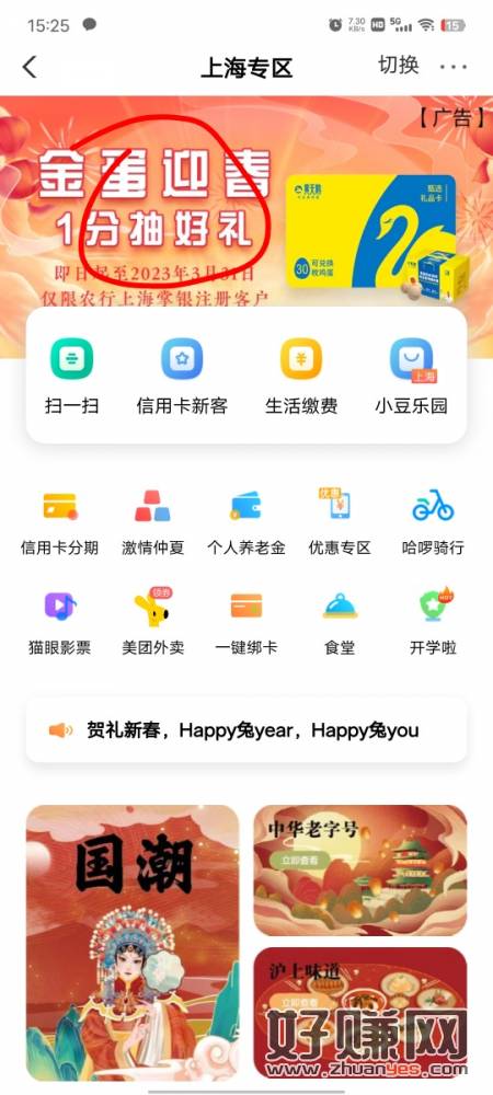农行飞上海城市专区