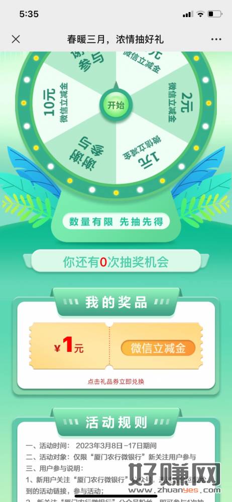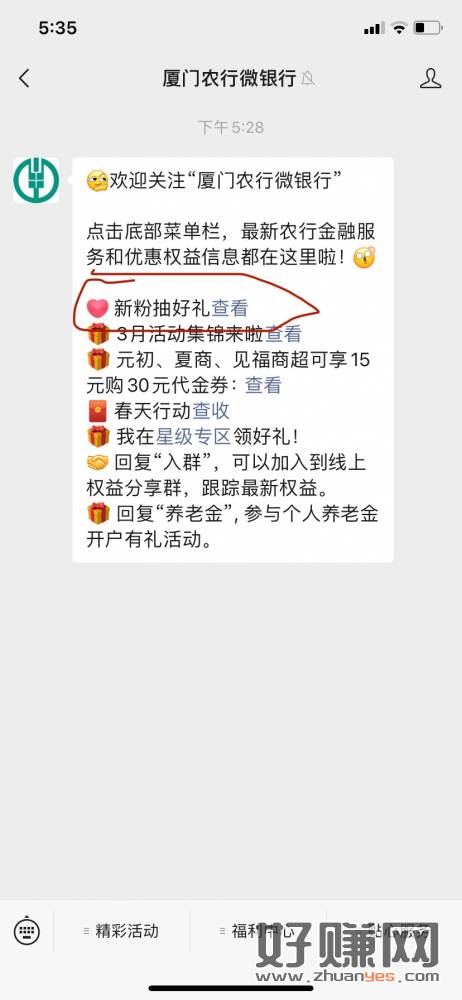 厦门农行微银行限首次关注抽奖,点推文第一个。