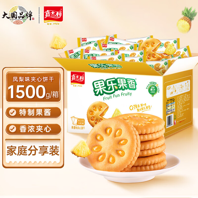 嘉士利 果酱夹心饼干独立包装1500g/整箱