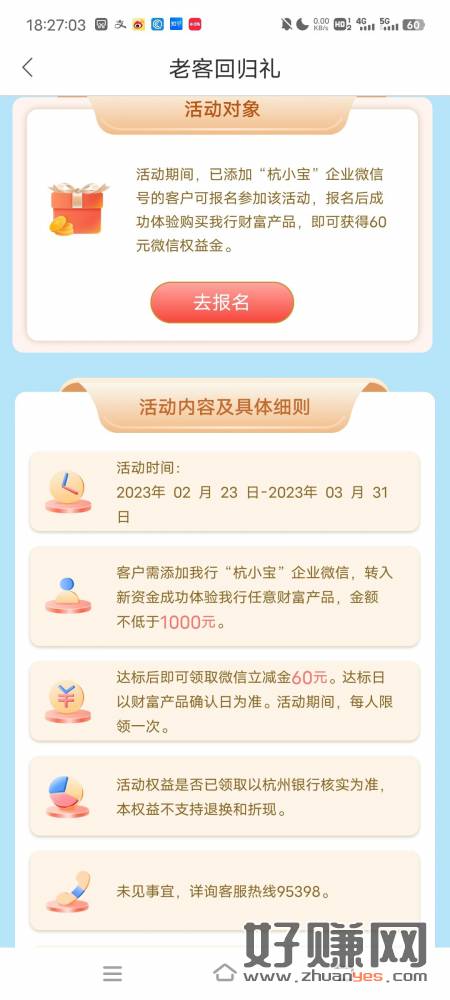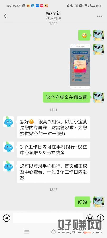 杭州银行 立减金 加企业微 9.9,然后体验任意理财100