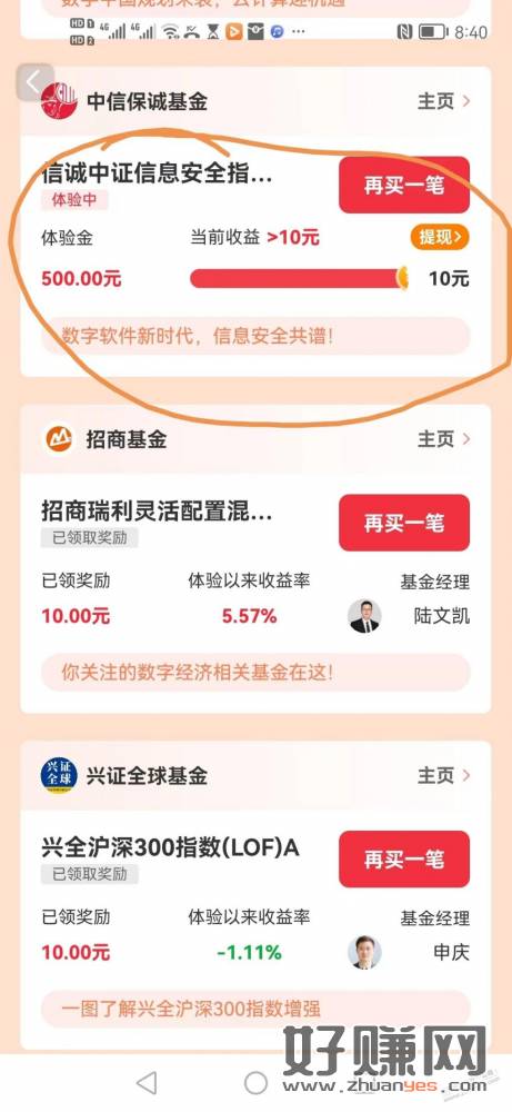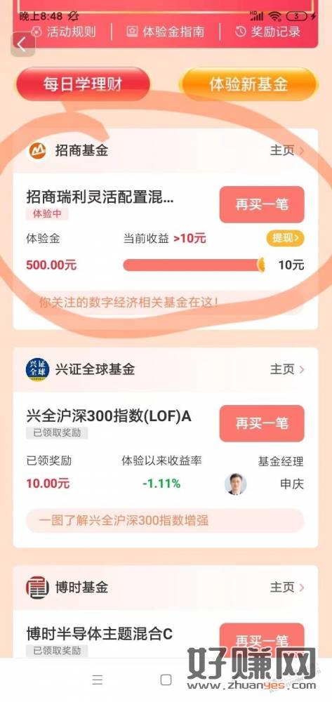 另之前领的部分基金100体验金收益超过2元,