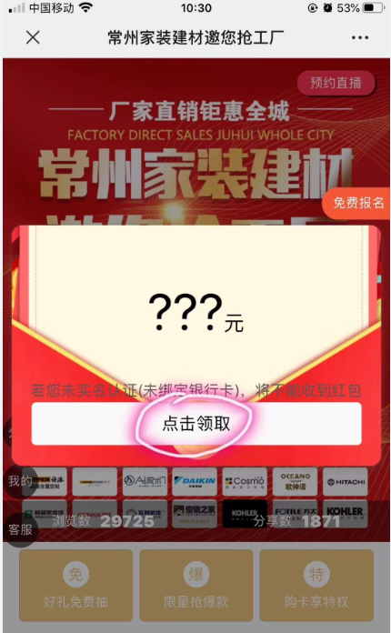 同一IP下多户同时并发可能只能领到一个红包,请尽量关WiFi用4G或者5G领取