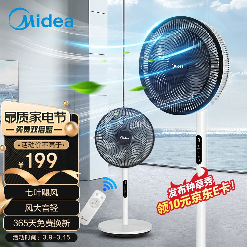 PLUS叠-10全品,美的 台立两用七叶遥控款电风扇