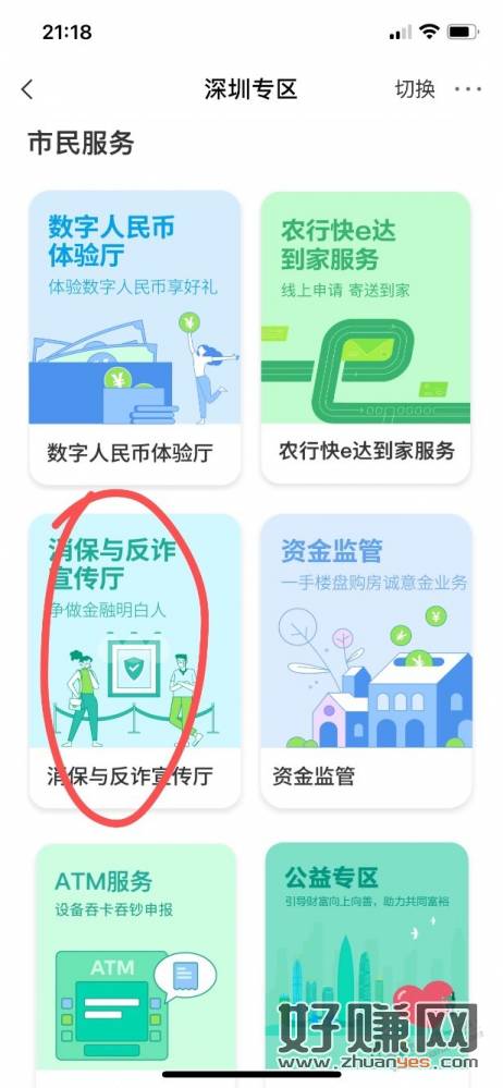 农业银行APP-搜索【城市专区】-右上角手动切换到深圳专区-下拉找到图片划圈-答题有礼