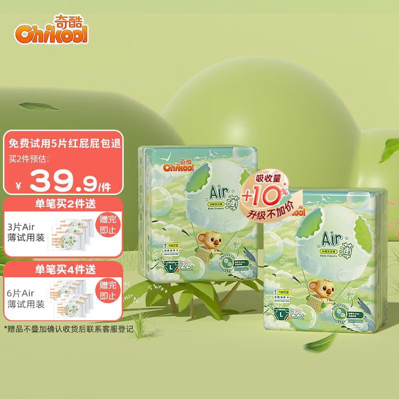 奇酷Air 超薄透气纸尿裤L44片(9-14kg),35.9亓,折0.8/片