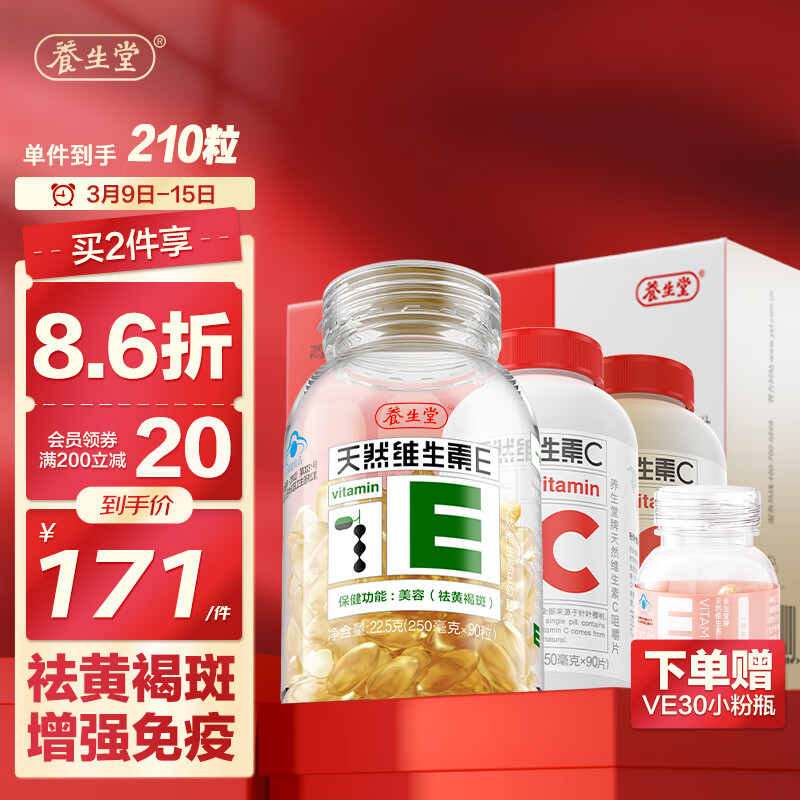 养生堂 维生素EC加量装礼盒(维生素E90粒+维生素C120片)