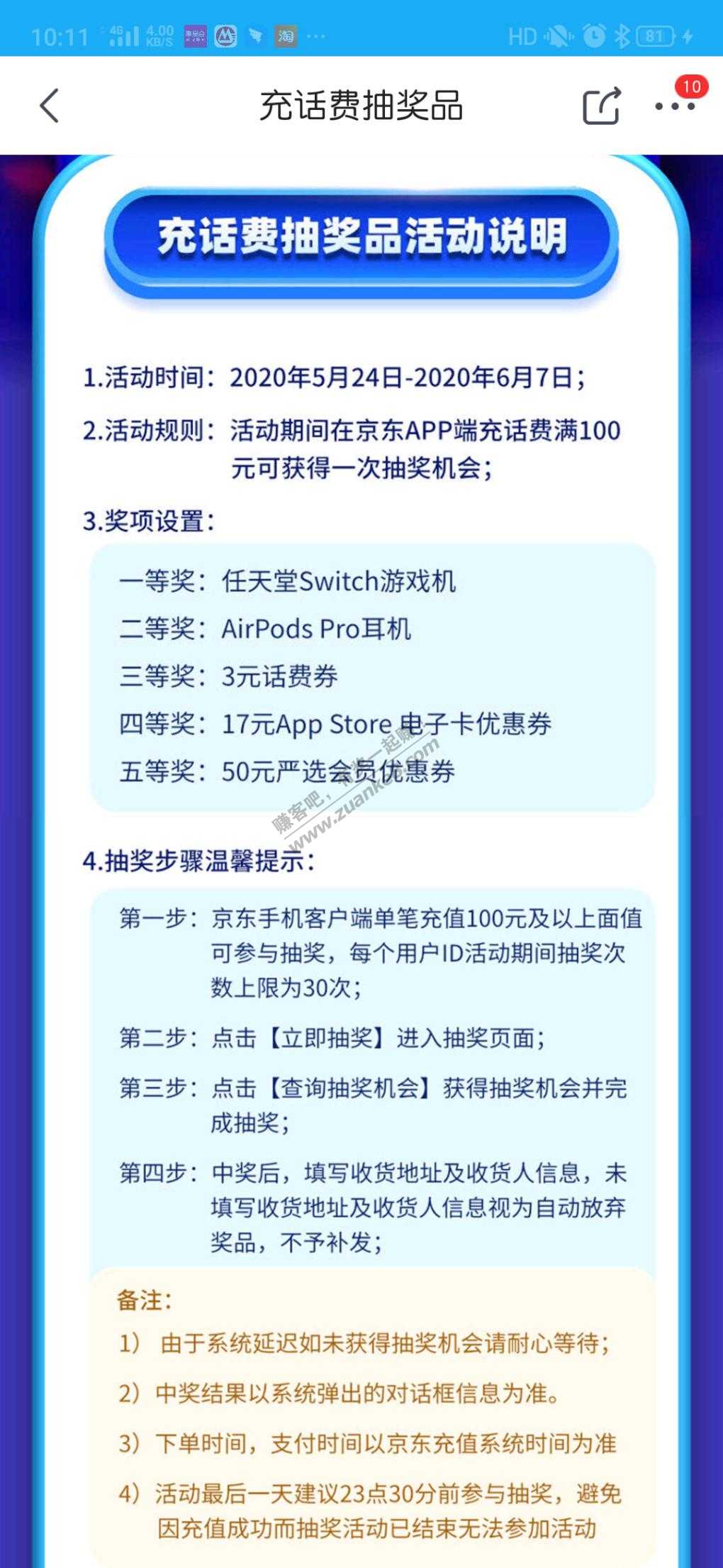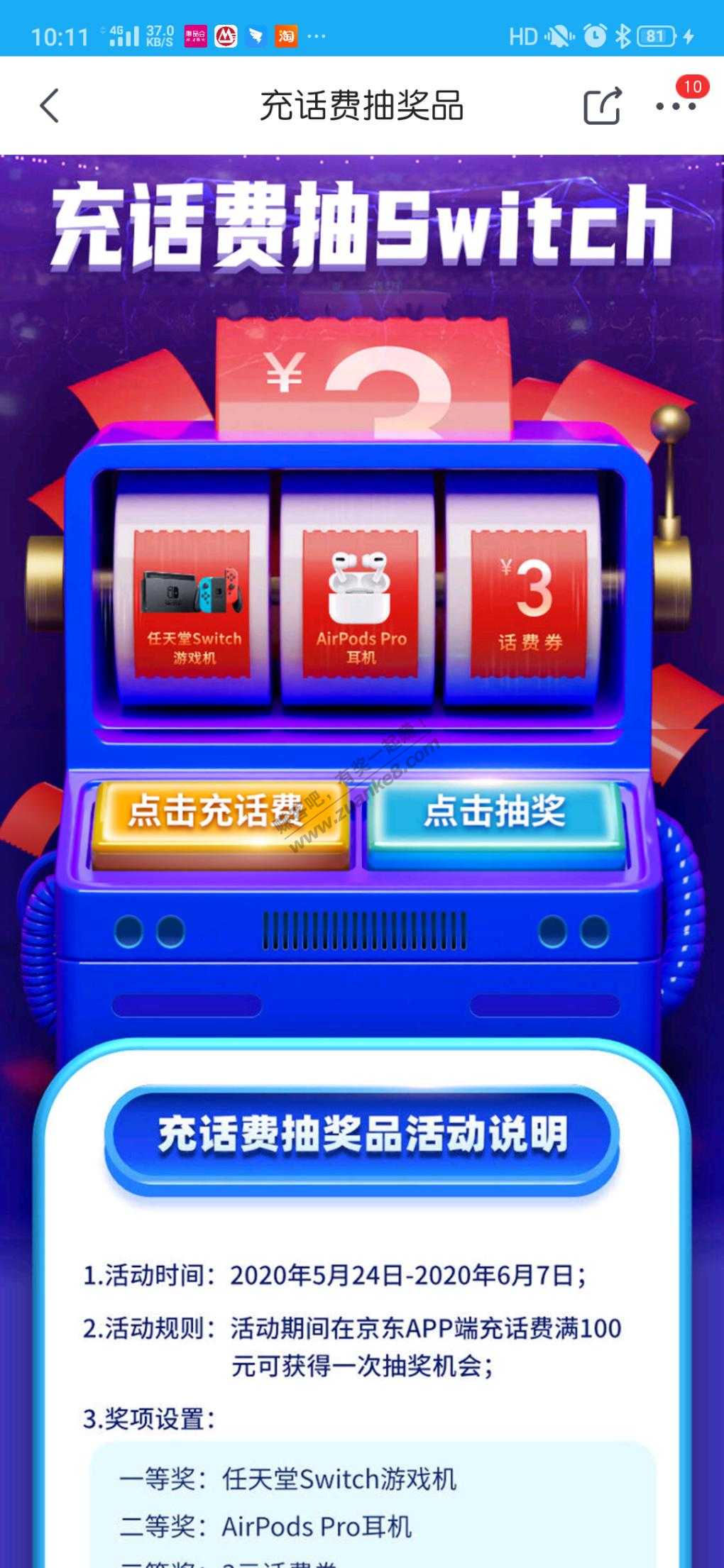 【京东】您的话费已到账!京东APP端充话费满100元可得一次抽奖机会,Switch游戏机、苹果无线耳机等你来抽! 3.cn/10PO-z6s