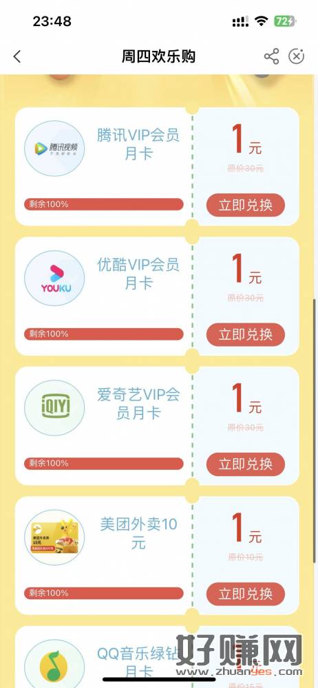 本地优惠-周四欢乐购-1元购爱奇艺会员等。