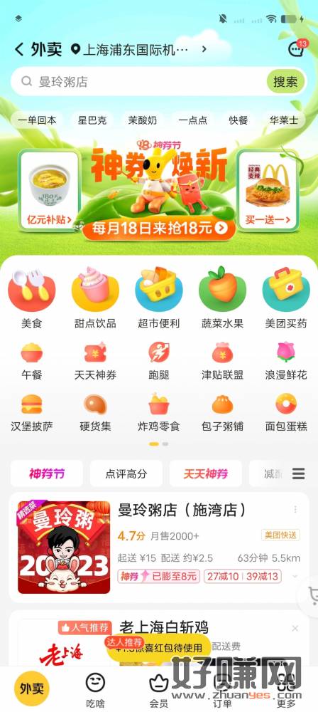 美团外卖app 首页点进去领取神券 我的25-10