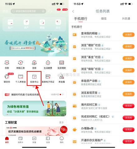 【工行象惠星期四抽微信立减金】新一期!工行APP搜索“任务中心”->完成所有简单的浏览任务->抽中立减金跳转到微信领取