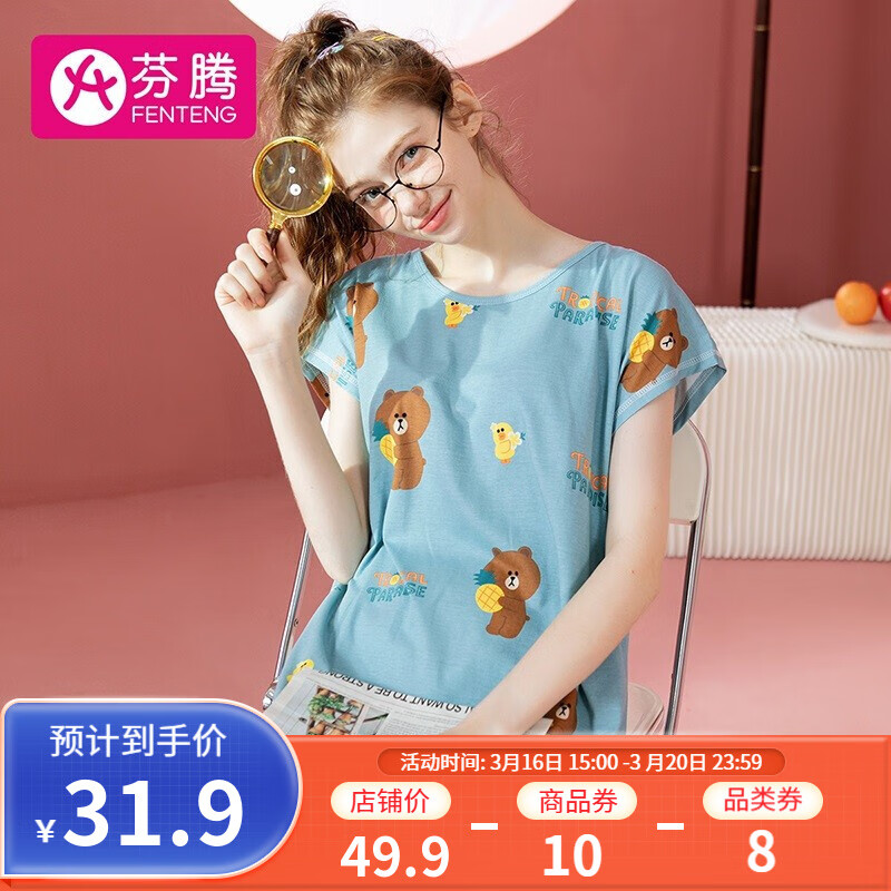 芬腾 女士联名款纯棉圆领家居服睡裙,页面下领-8券,29.9亓