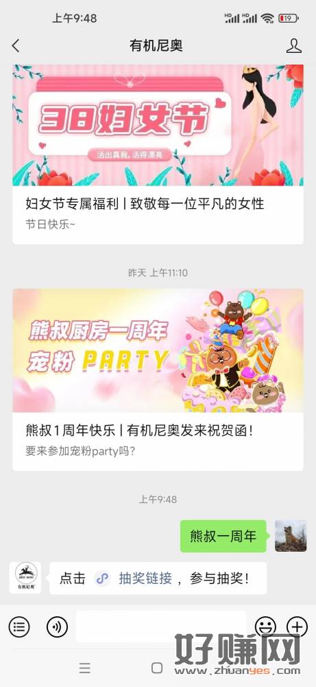 关注微信公众号【有机尼奥】回复‘’熊叔一周年” 参与抽奖 奖品:意面 香肠 开奖时间:3月31日