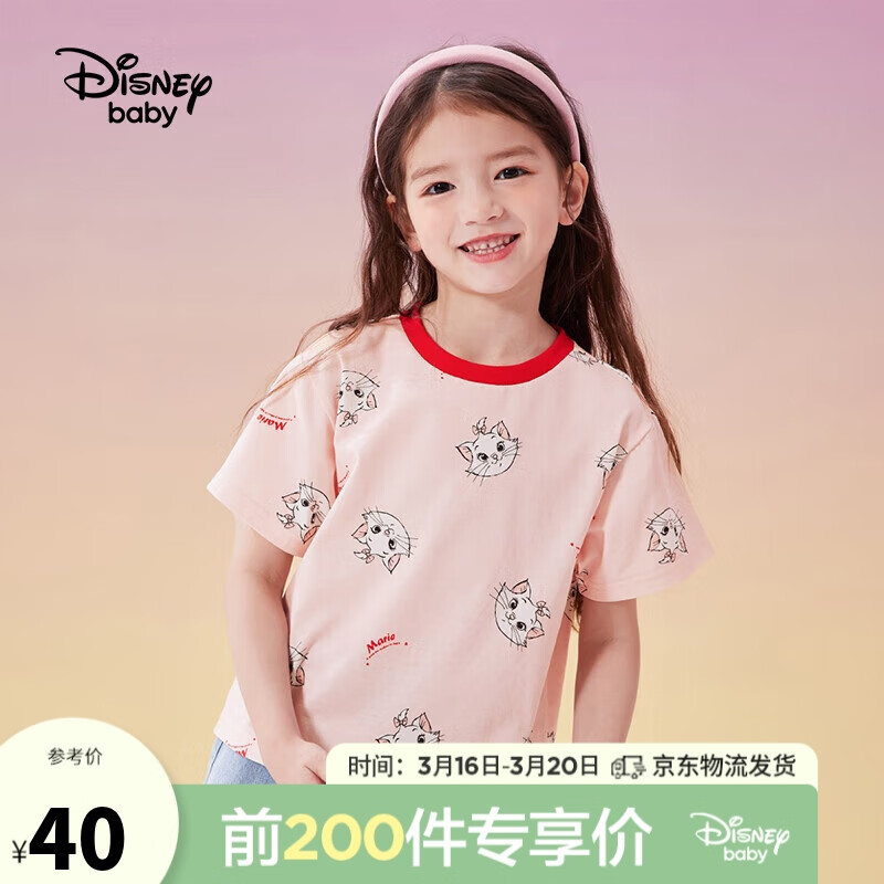 迪士尼(Disney)女童棉质透气T恤,任拍1件,叠-30满减,付39.9亓+u