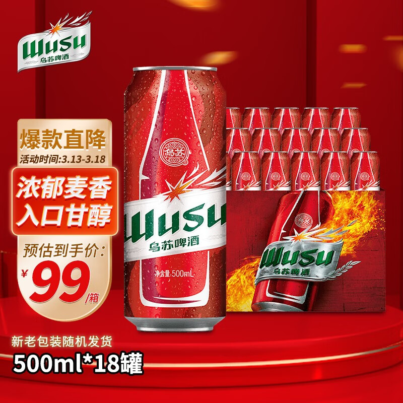 乌苏啤酒(wusu)国产烈性啤酒箱500ml*18罐/箱