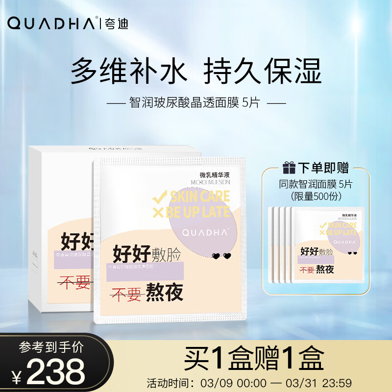 先领450-197券,夸迪 华熙生物智润玻尿酸晶透面膜5片