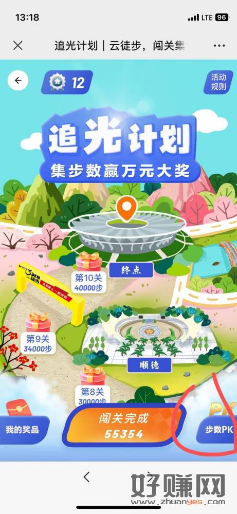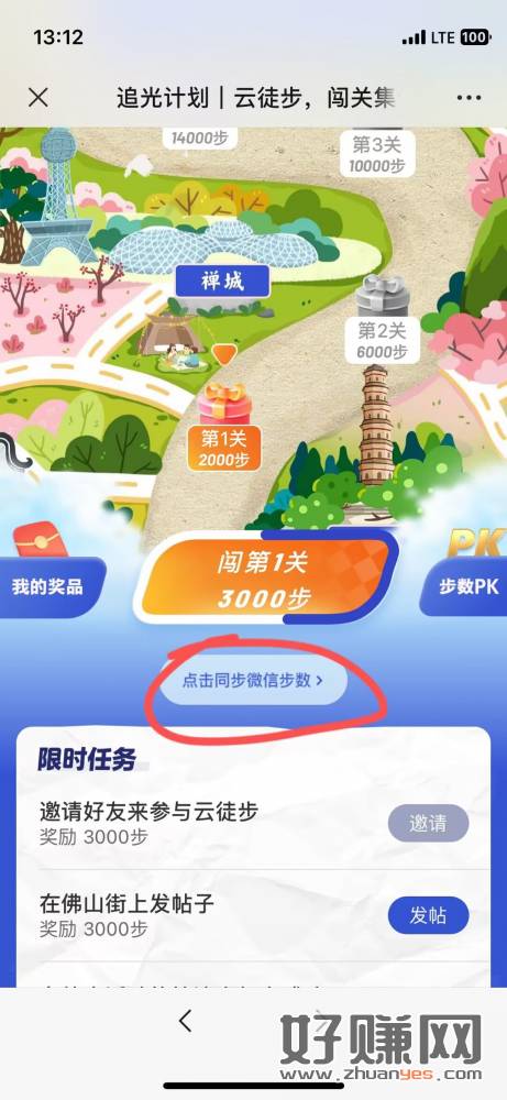 先去第2个链接刷5w步,再进第一个上传同步步数,然后爬楼,然后去pk一下,一共3+,刷步提示要交钱的换个号去