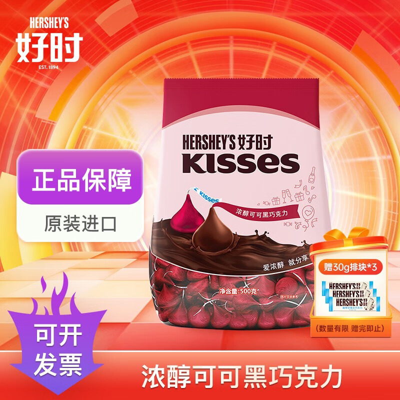 好时 Kisses 眩彩多口味糖果巧克力500g,50亓包邮
