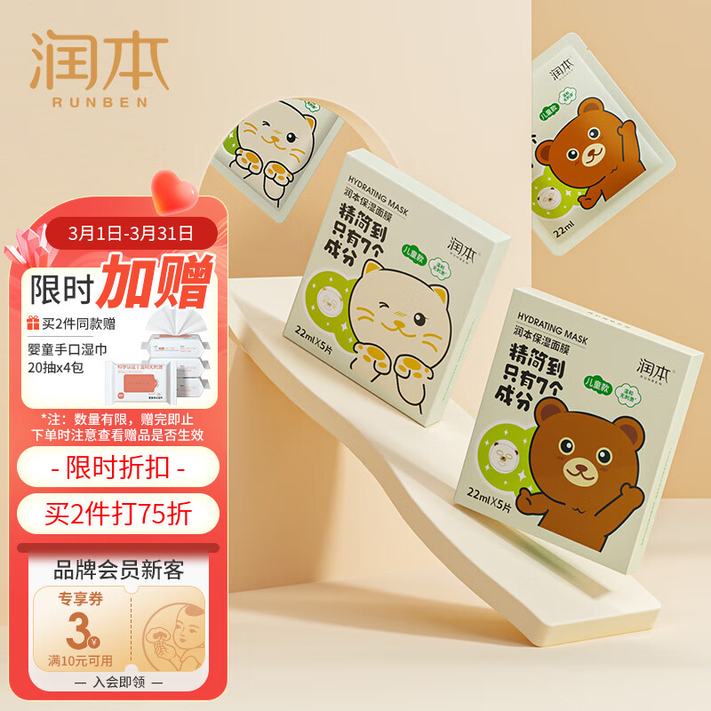 润本(RUNBEN)儿童保湿滋润面膜5片×2盒